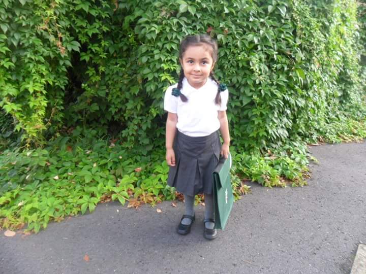 As the classroom door opened, my Ashti was the first one out. She gave me a beautiful piece of artwork she had made! She looked ever so beautiful, still so clean and smart but just a bit grown up now. She then said to me “Why are you here mummy? I want to stay!” I knew from that, she had a fantastic time. She showed us her favourite spots of the day. So far, she had wanted to be a princess dentist when she grows up, but today she decided she was going to be a vet from now on. She told me she had known the date and day of the week and had stood up and recognised it on the board in front of her whole class. She told me she had made new friends and that she even loved her new head teacher.